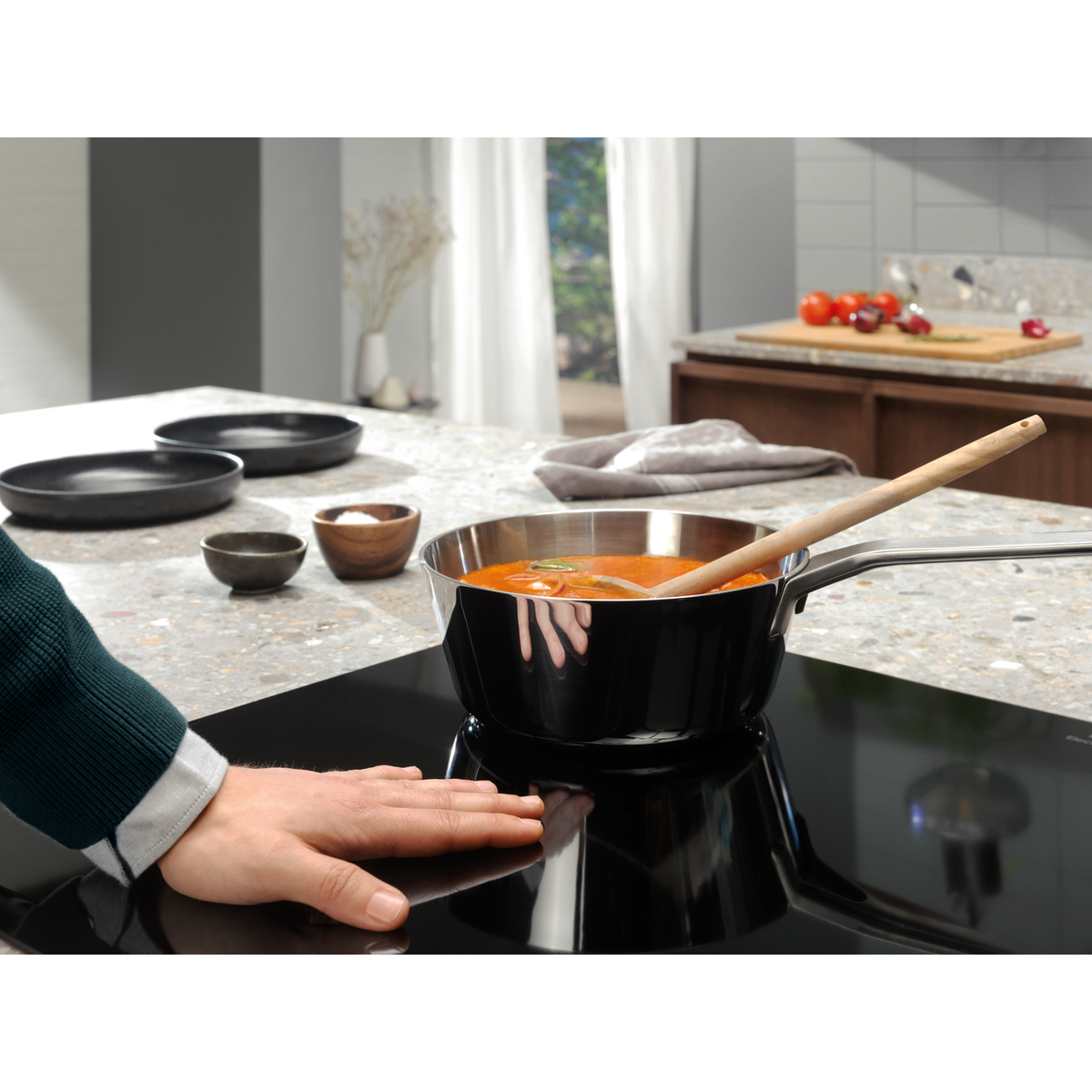 The 500 Fast & Powerful induction hob with Powerboost heats twice as fast as a radiant hob. Efficiently, with immediate temperature response.