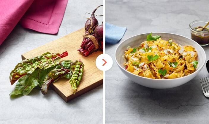 2Beetroot leaf pestoBeetroot leaves are very nutritious, being a great source of both Vitamin A and K. Give them a quick blanche and then mix with basil, a garlic clove, pine nuts, olive oil and a pinch of salt to make a mild and delicious pesto.