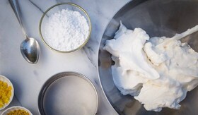 Meringue: 3 egg whites / a pinch of salt / 125gr brown sugar / 125gr icing sugar